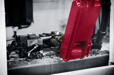 Time-consuming work processes, such as the milling of a blank, can be carried out particularly economically by an industrial robot. The Robot Cell control unit coordinates the optimally coordinated work steps between the connected machines via interfaces to the milling machine and the deburring machine.