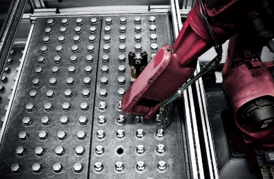 Finally, the robot places the processed component on the pallet and immediately picks up a new blank.